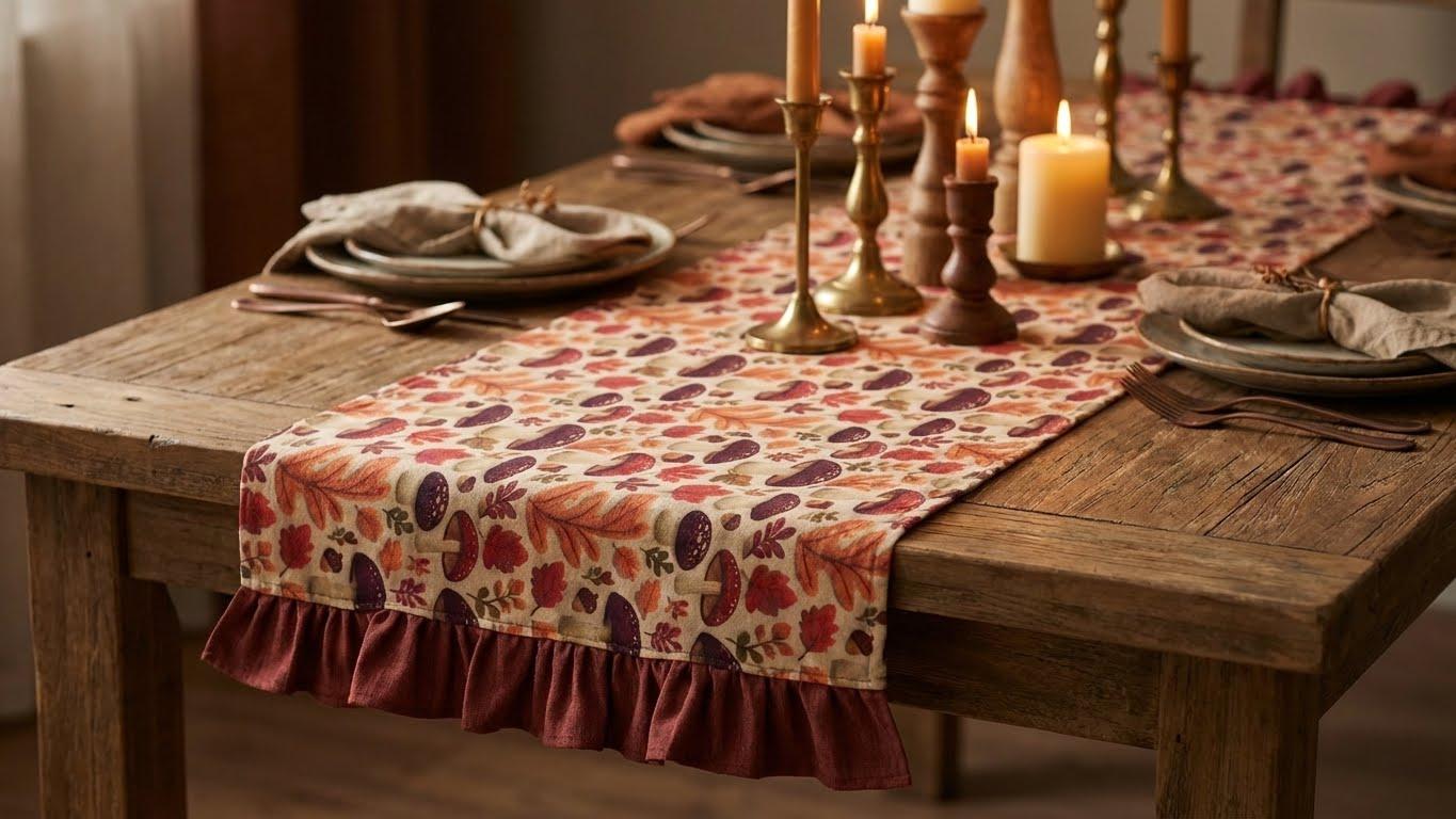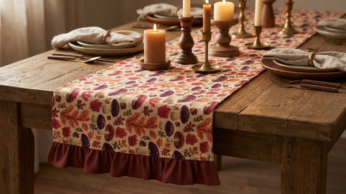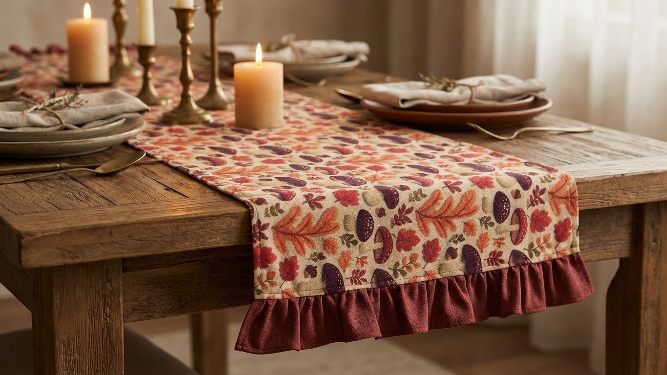 Evinizin en keyifli köşesi olan yemek masanızı, mevsimin büyüleyici renkleriyle canlandırın. [Marka Adınız] olarak tasarladığımız bu özel runner, sonbahar ormanlarının huzurunu evinize getiriyor.