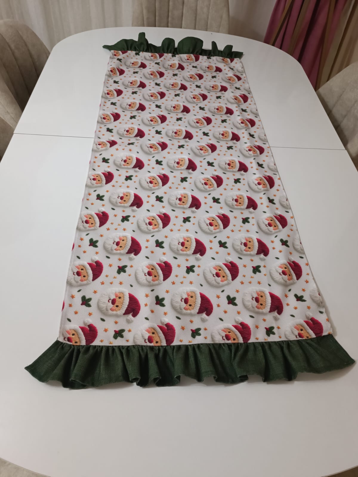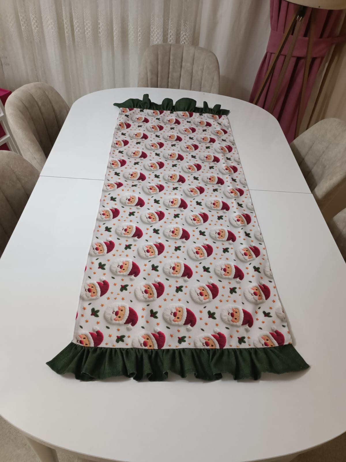 Masanıza yılbaşı ruhunu en zarif şekilde taşımak ister misiniz? Santa Claus figürlü bu özel tasarım runner, hem sıcak hem de neşeli bir atmosfer oluşturmanız için özenle hazırlanmıştır.